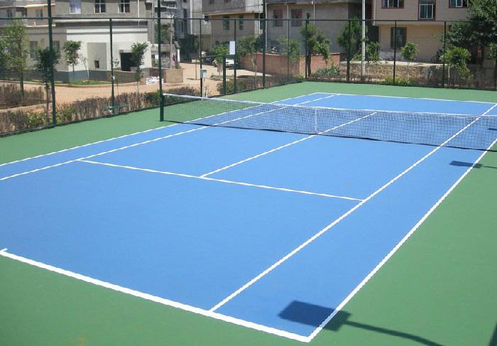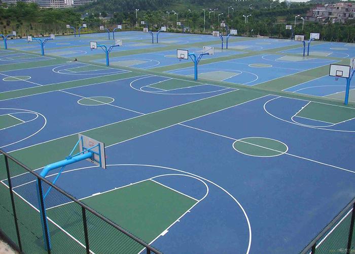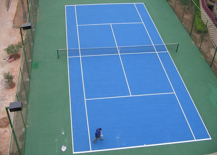 按標準尺寸量度定位,用帆布線標出線條位置,然后用美紋紙沿帆布線貼在 球場上,用毛刷將專用劃線漆均勻刷于兩美紋紙之間,待涂料表干后把美紋紙撕提即可。
