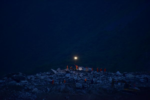 照亮了黝黑的茂縣山體垮塌救援現場,