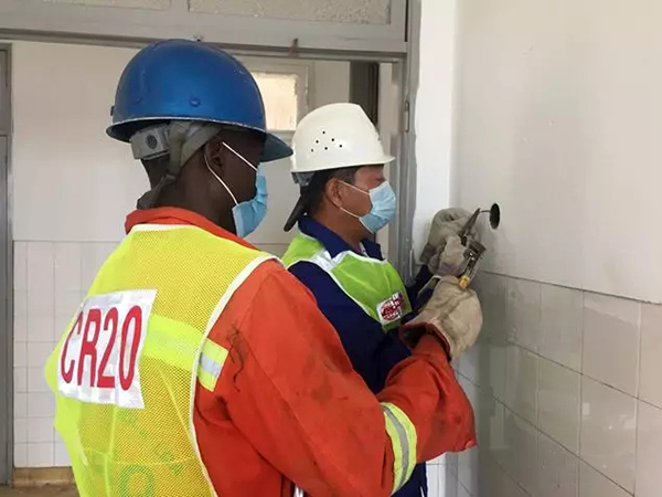 接到政府支援請求后,中鐵二十局集團安哥拉國際公司從周邊項目抽調2名電工及12名當地員工立即援馳。為盡快完成醫院電路改造維修任務,援建員工每天早上6點多出門、晚上7點多下班,午餐由項目部安排專人送至施工現場,最多只預留半小時的吃飯時間。“時間很緊張,我們早一分鐘完成任務,安方人民的安全就能提前有一份保障。”參與建設任務的中方員工步延輝說道。