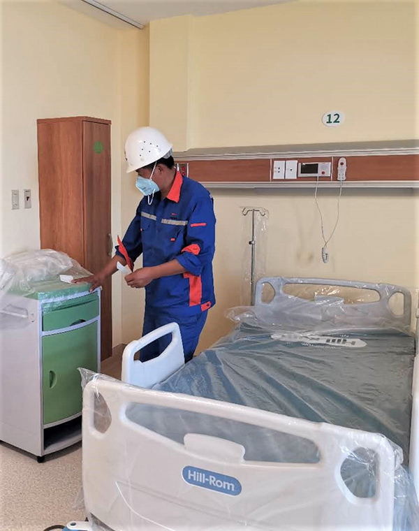 “在疫情期間實施搶工,挑戰比以往更大。但為了特多人民的生命健康安全,我們會像國內搶建火神山醫院一樣,擔起我們的責任。”項目負責人李東生表示,項目部既要迅速響應業主需求,還要控制施工人員密度,防止出現交叉感染。項目部緊急召開會議,暫停其他區域施工,協調多方資源,將其他區域床位設備轉移到指定區域。經過7天的緊張工作,當地時間3月24日,所有病房床位和設備已移交給業主。