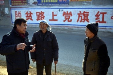 于晨光(左一)與村民交談中。