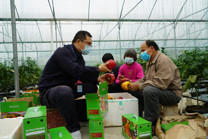 春天里,大棚里的彩椒苗比較潮濕,結(jié)出的果子質(zhì)量不好,扶貧干部和村民一起,嚴(yán)把成品質(zhì)量關(guān)。譚茂茜 攝