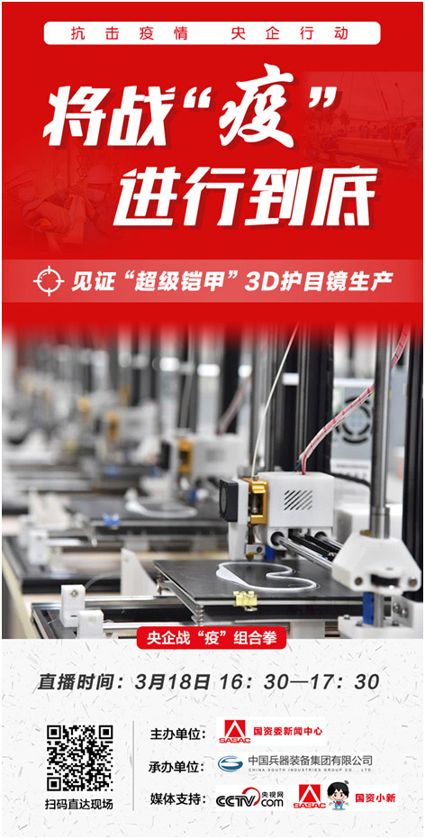 3月18日16:30-17:30,《央企戰疫組合拳》將探訪3D護目鏡生產車間,帶大家見證“超級鎧甲”的誕生過程。