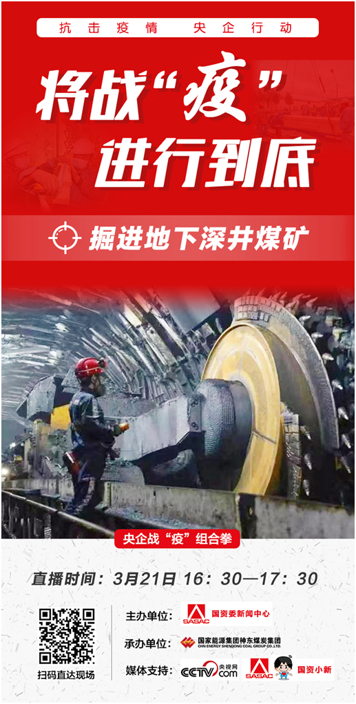 3月21日,《央企戰疫組合拳》將帶領大家深入地下,在國家能源集團神東煤炭創造單日產煤6.56萬噸記錄的采掘面,展示現代化煤礦的風采。