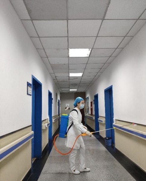趙杰正在給隔離病房消毒