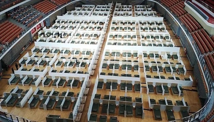 中建三局、中建八局等單位兩天兩夜火速完成武漢體育中心方艙醫院建設。
