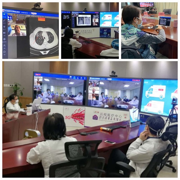 2月25日,在中國聯通5G網絡和醫療云平臺支撐下,橫跨武漢、北京和舟山三地共六個會場的新冠肺炎CT遠程會診順利舉行。