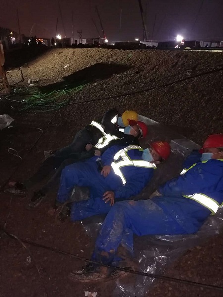 施工間隙,累到極致的華潤燃氣建設者們就地休息。