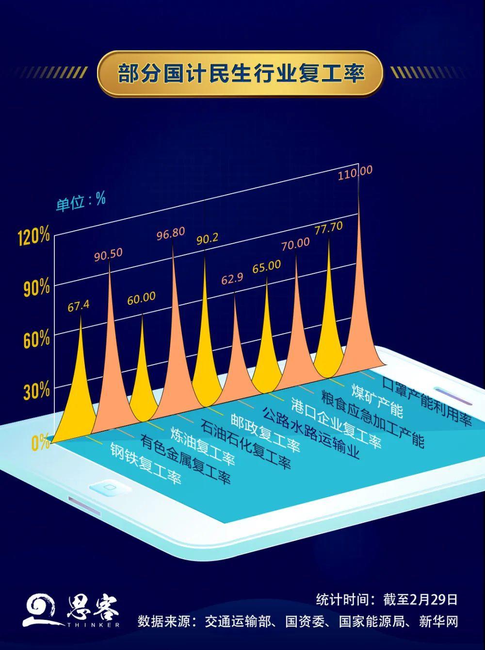石油石化、通訊、電力、交通運(yùn)輸?shù)刃袠I(yè)的復(fù)工率已經(jīng)超過(guò)95%,有的已經(jīng)達(dá)到100%。央企接近“滿(mǎn)分”的復(fù)工率不僅能為戰(zhàn)“疫”和減輕經(jīng)濟(jì)下行壓力提供強(qiáng)有力支撐,還能帶動(dòng)上下游產(chǎn)業(yè)鏈,為上下游環(huán)節(jié)的中小企業(yè)提供更多發(fā)展機(jī)會(huì)。