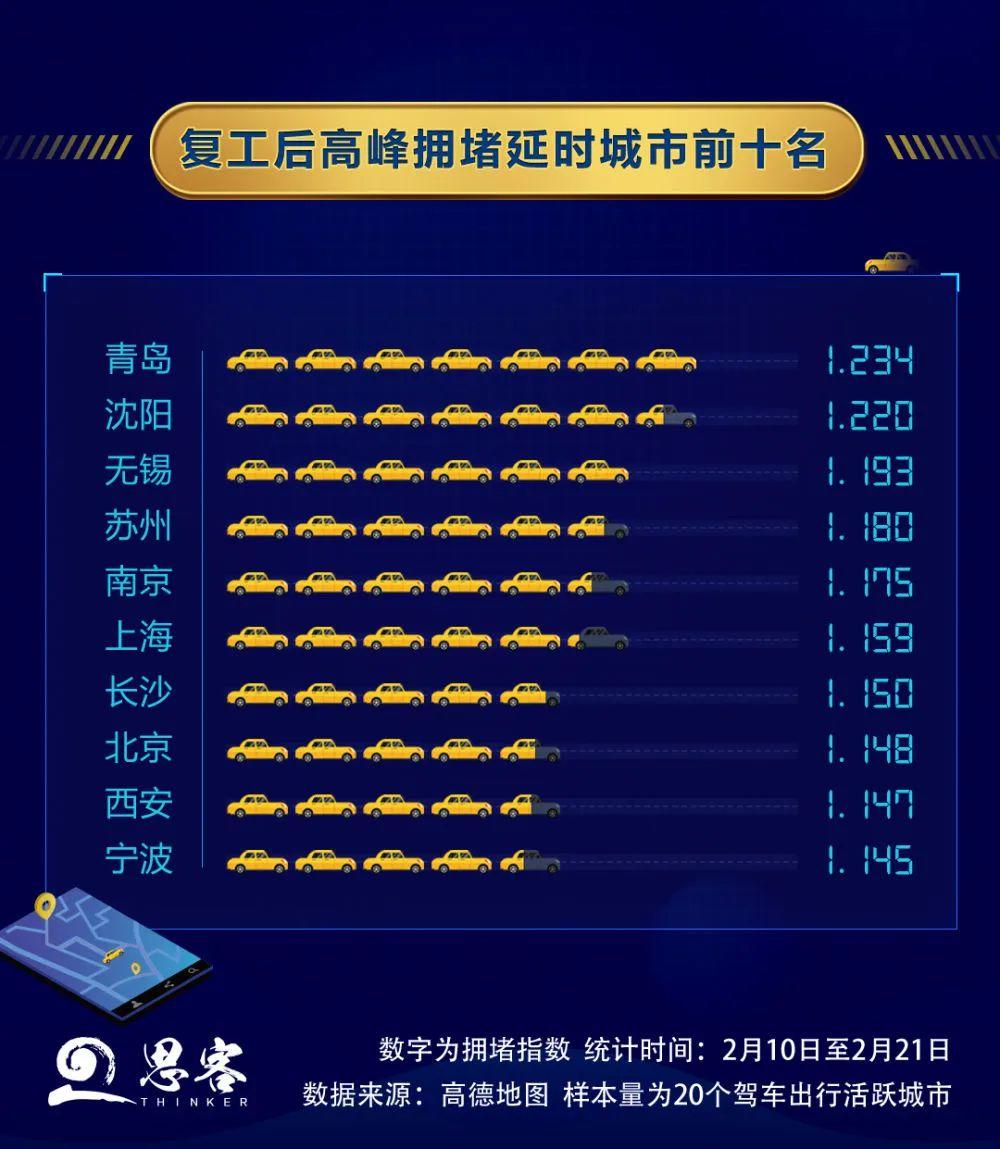 城市又開(kāi)始奔跑,部分大城市擁堵趨勢(shì)開(kāi)始回升。復(fù)工的人流穿梭在城市中,隨之而來(lái)的是車(chē)流增多、道路變“紅”,青島、沈陽(yáng)、無(wú)錫、蘇州、南京等地的民眾已經(jīng)開(kāi)始體驗(yàn)復(fù)工堵車(chē)的“煩惱”,“第一次看到堵車(chē)會(huì)開(kāi)心”還登上了微博熱搜,有網(wǎng)民說(shuō)“久違的堵車(chē)讓我看到城市在復(fù)蘇。”