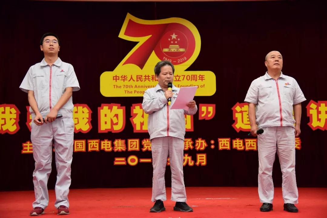 活動中,展播了各單位《我和我的祖國》系列視頻,與會同志同唱了愛國歌曲《五星紅旗迎風(fēng)飄揚(yáng)》,聆聽了詩歌朗誦《我的祖國》和西電故事《爭做頂梁柱,騰飛中國龍》,欣賞了展現(xiàn)工人力量的舞蹈表演《奮進(jìn)新時代》,三位“建國”同志結(jié)合個人成長、企業(yè)變遷、祖國發(fā)展談了自己的切身感悟,西電西變、西開有限兩家單位分別作了關(guān)于道德講堂的經(jīng)驗(yàn)交流,與會人員共同欣賞了歌伴舞《我和我的祖國》。現(xiàn)場活動氣氛熱烈,大家情緒高昂,故事生動感人,歌聲優(yōu)美嘹亮。