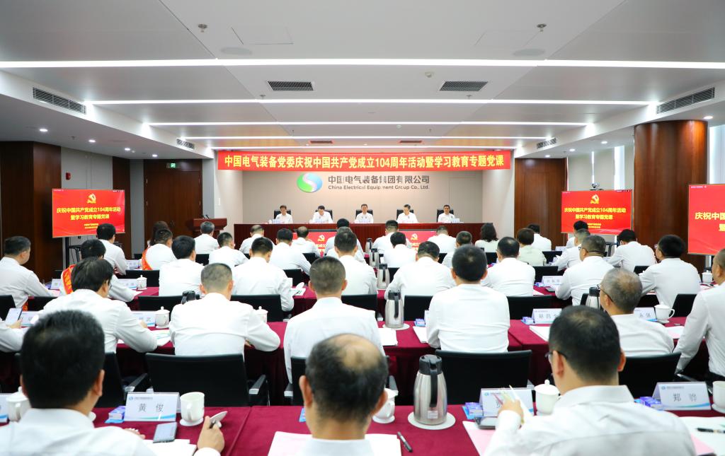 6月30日,中國電氣裝備黨委舉辦慶祝中國共產黨成立104周年活動暨深入貫徹中央八項規定精神學習教育專題黨課,深入學習領會習近平新時代中國特色社會主義思想,貫徹落實黨的二十大和二十屆二中、三中全會精神,繼承和弘揚偉大建黨精神,扎實推進深入貫徹中央八項規定精神學習教育,發揮先進典型示范引領作用,通過“先鋒——創先爭優、聚力——同心同行、攻堅——使命擔當、領航——凝心鑄魂”四個篇章,匯聚先鋒力量、凝聚發展共識、錘煉黨性修養,鼓舞、激勵廣大黨員干部職工和團員青年,牢記職責使命,強化責任擔當,為加快建設世界一流智慧電氣裝備集團貢獻新的更大力量。集團公司黨委書記、董事長李洪鳳講授學習教育專題黨課暨青年精神素養提升第一課,黨委副書記、總經理閆華鋒宣讀“兩優一先”表彰文件,黨委副書記孟漢峰主持會議,集團公司黨委領導班子成員參加會議。