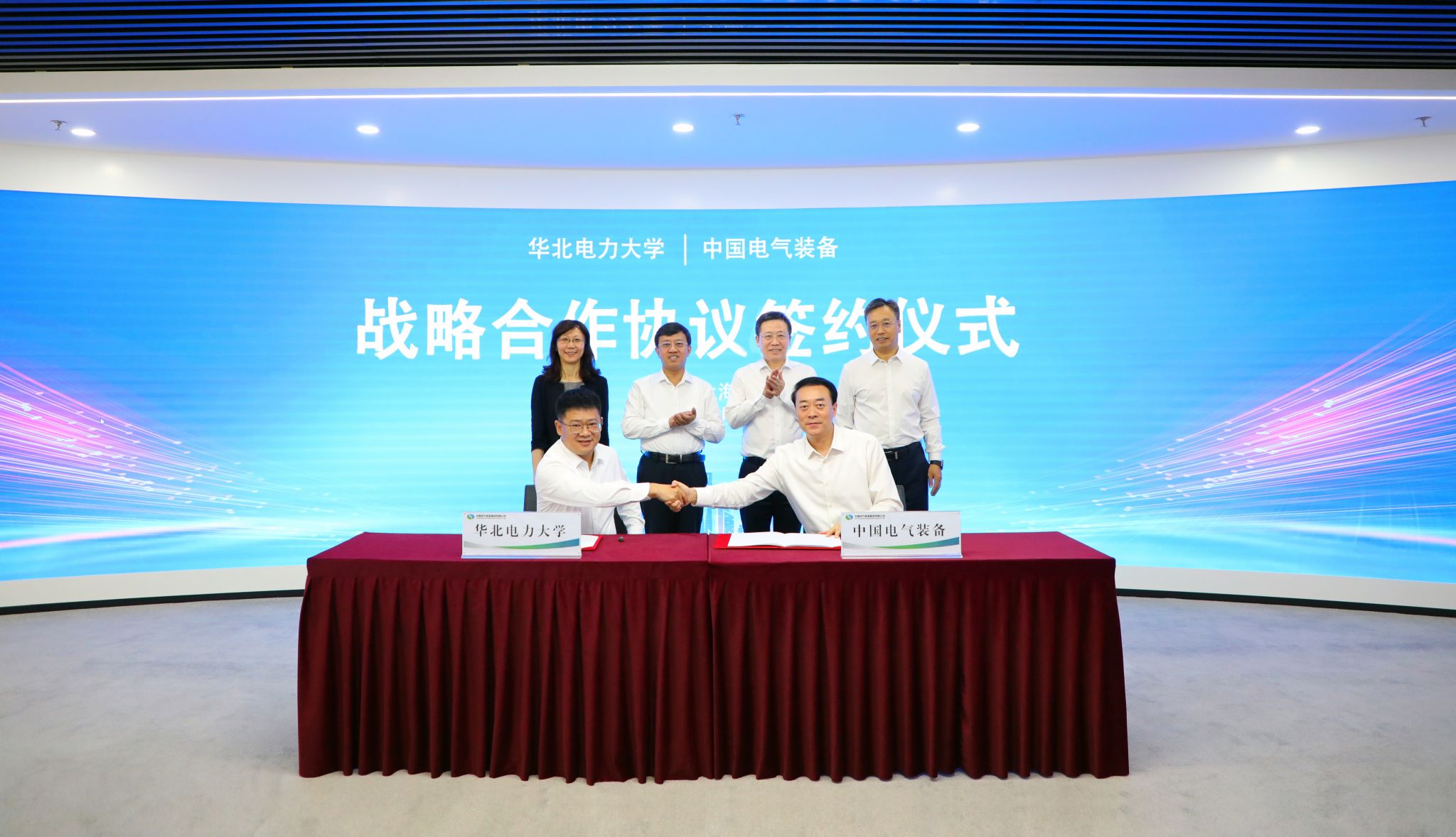 9月5日,中國電氣裝備黨委書記、董事長李洪鳳,黨委副書記、總經(jīng)理閆華鋒在上海與華北電力大學(xué)黨委書記汪慶華,黨委副書記、校長畢天姝舉行會談。集團(tuán)公司黨委副書記孟漢峰、華北電力大學(xué)副校長劉云鵬參加會談并出席戰(zhàn)略合作協(xié)議簽約活動。