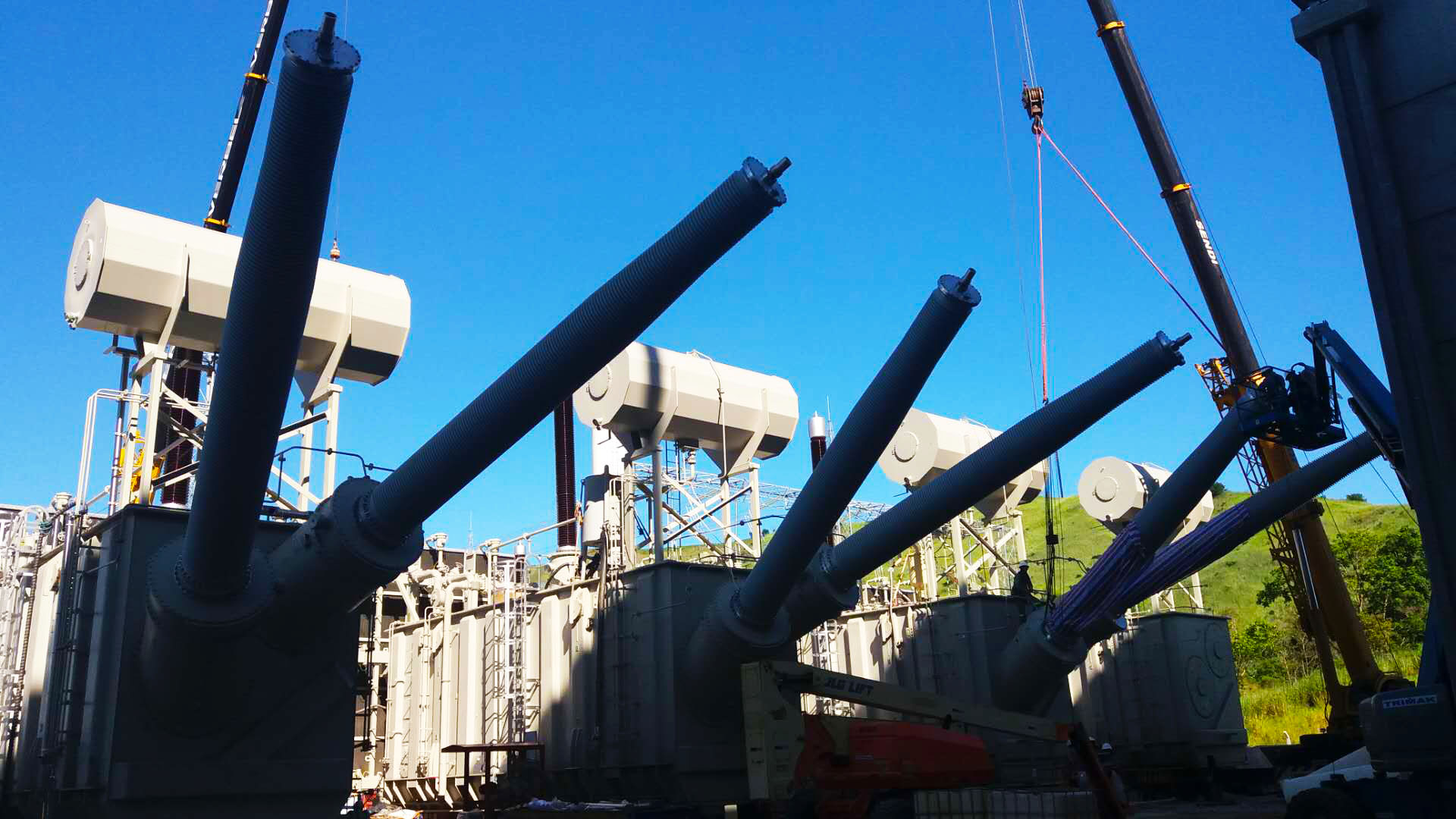 西電西變幾批赴巴西的技術服務人員在公司各方的高度重視和積極配合下,歷經近10個月戰高溫斗酷暑,在安裝現場與外方施工人員的密切配合下,目前已經按進度要求完成了13臺±800kV高端換流變壓器的安裝任務。