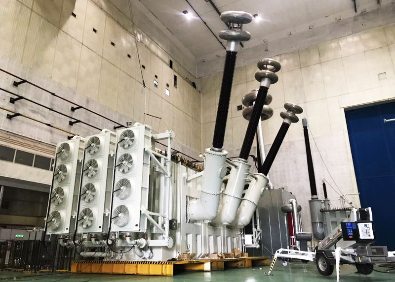國投南陽電廠一期工程位于河南省南陽市內(nèi)鄉(xiāng)縣,是內(nèi)鄉(xiāng)“煤電運”一體化項目的重要組成部分,被列入《中原經(jīng)濟區(qū)規(guī)劃》和河南省重點建設(shè)項目,建成后將極大地改善華中區(qū)電網(wǎng)結(jié)構(gòu),提高電網(wǎng)供電可靠性和安全穩(wěn)定性水平。西電西變共承接了這個項目2臺500kV 1200MVA三相一體發(fā)電機變壓器,該產(chǎn)品具有電壓高、容量大、試驗難度大等特點。西電西變員工以精益求精的工匠精神細心打造,順利完成了首臺產(chǎn)品的制造。該產(chǎn)品的出廠型式試驗歷時5天,在客戶和監(jiān)造的共同見證下,一次性通過了所有出廠型式試驗項目。