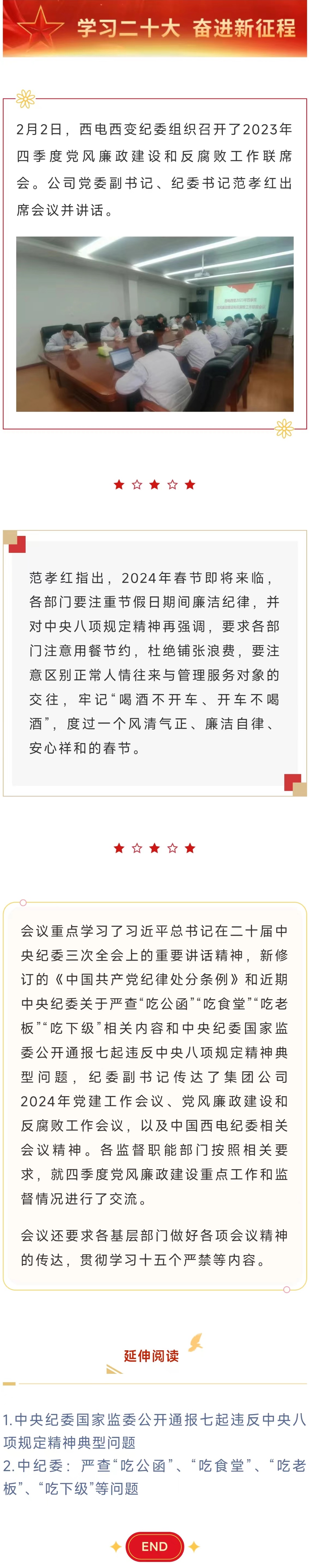 西電西變紀委召開2023年四季度黨風廉政建設和反腐敗工作聯席會