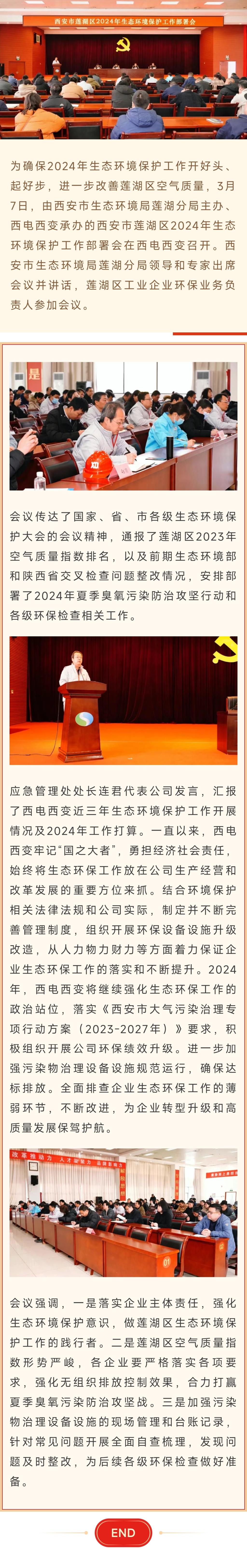 西電西變承辦西安市蓮湖區2024年生態環境保護工作部署會
