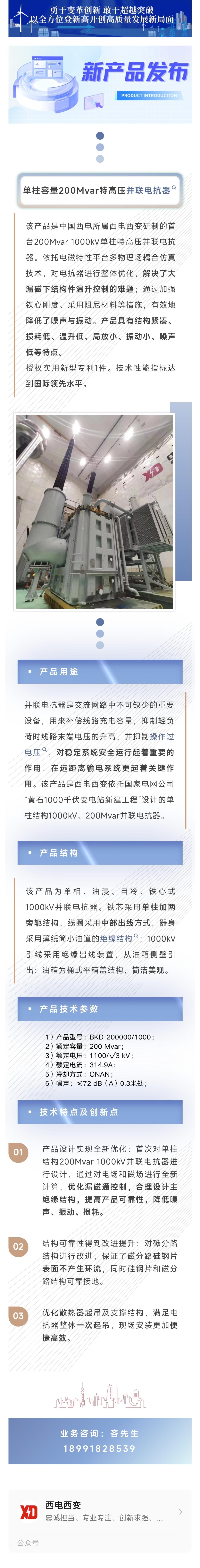 新產(chǎn)品發(fā)布丨單柱容量200Mvar特高壓并聯(lián)電抗器
