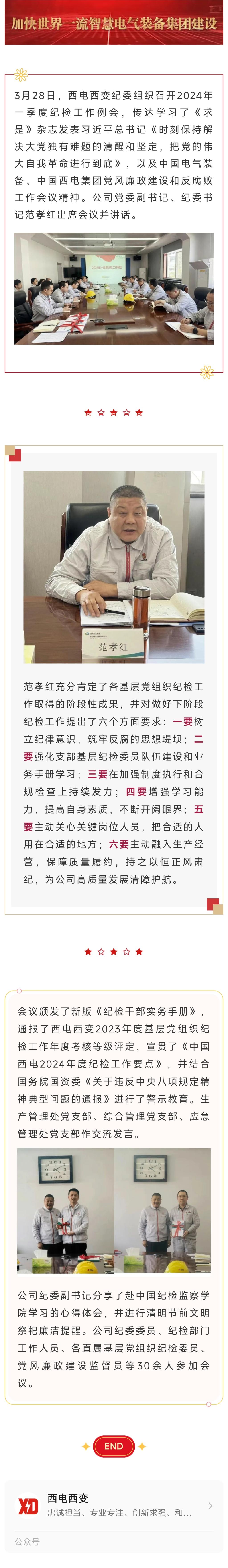 清風(fēng)護航丨西電西變紀(jì)委組織召開2024年一季度紀(jì)檢工作例會