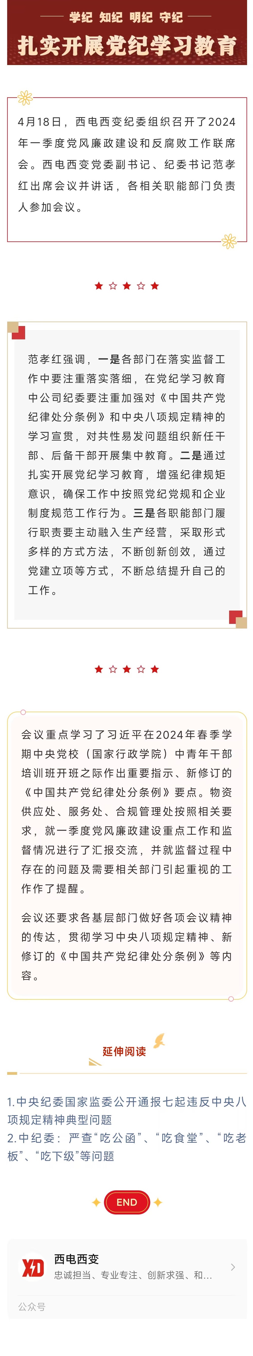 黨紀學習教育丨西電西變紀委召開2024年一季度黨風廉政建設和反腐敗工作聯席會