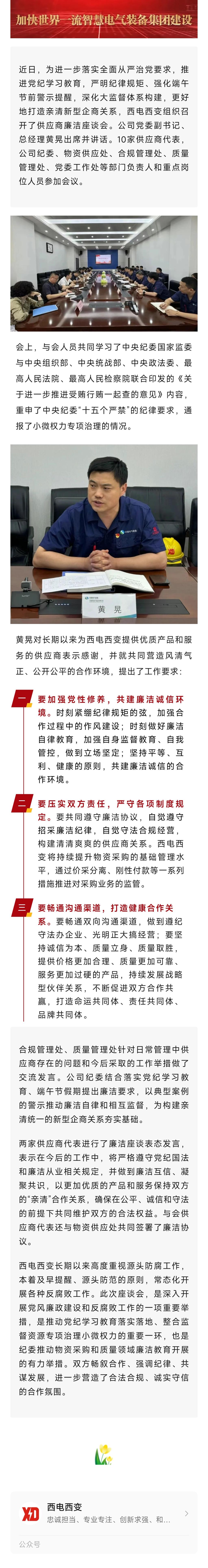構建親清企商關系 共筑嚴實廉潔防線丨西電西變組織召開端午節前供應商廉潔座談會