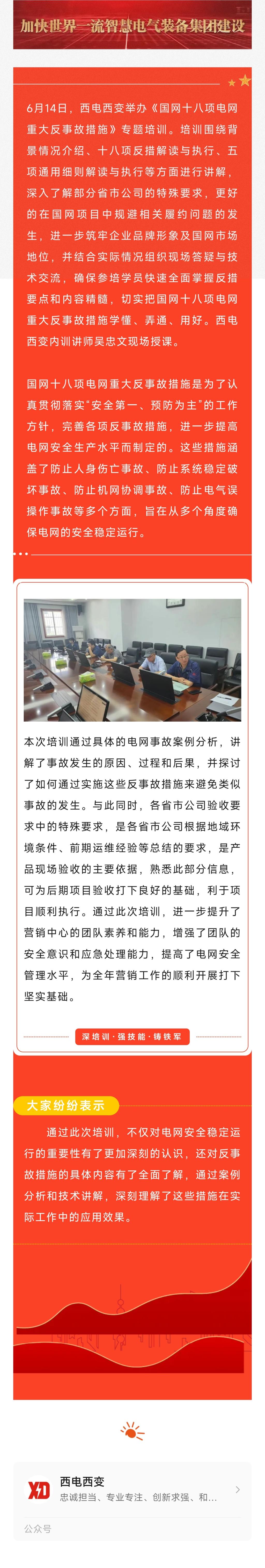 深培訓 強技能 鑄鐵軍丨西電西變舉辦《國網十八項電網重大反事故措施》專題培訓