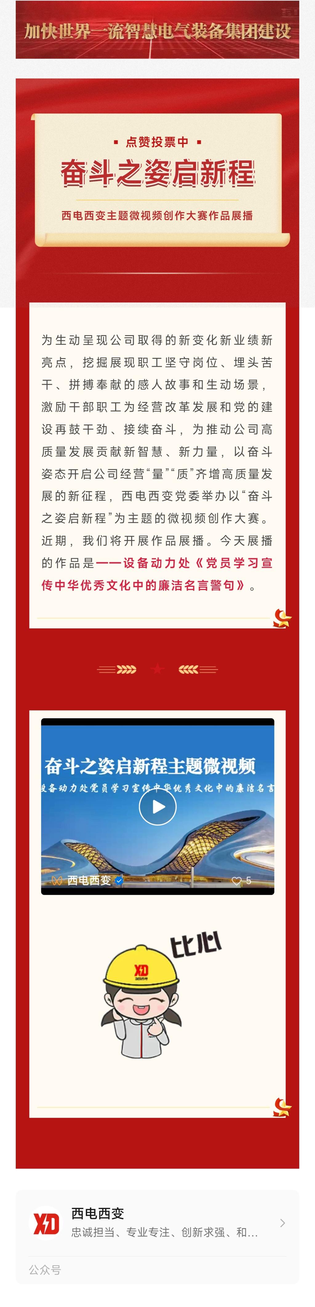 奮斗之姿啟新程丨西電西變主題微視頻創(chuàng)作大賽作品展播——設(shè)備動(dòng)力處《黨員學(xué)習(xí)宣傳中華優(yōu)秀文化中的廉潔名言警句》