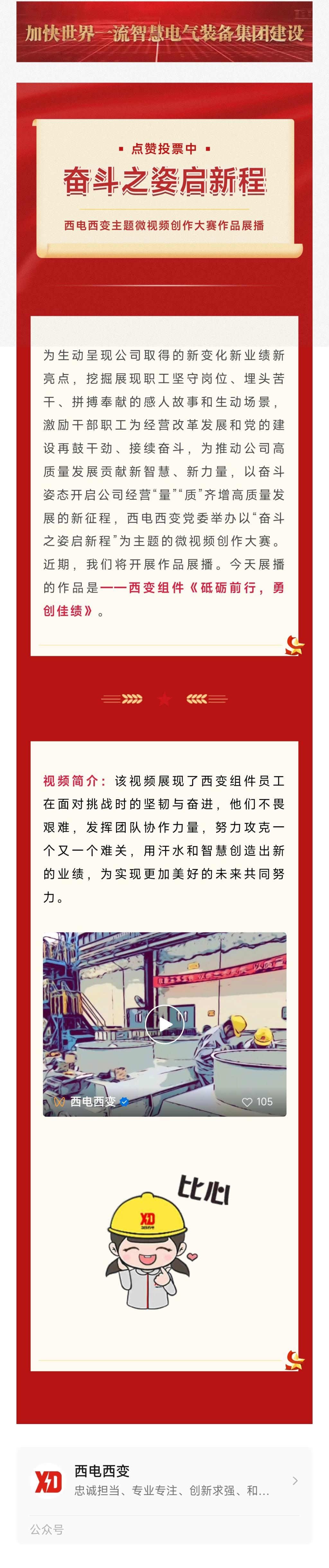 上一條:奮斗之姿啟新程丨西電西變主題微視頻創作大賽作品展播——西變組件《奮斗點亮生產新征程》