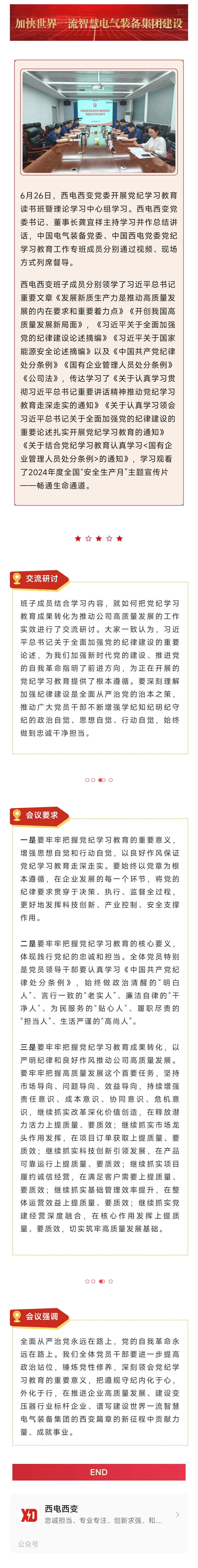 黨紀(jì)學(xué)習(xí)教育丨西電西變黨委開(kāi)展黨紀(jì)學(xué)習(xí)教育讀書(shū)班暨理論學(xué)習(xí)中心組學(xué)習(xí)