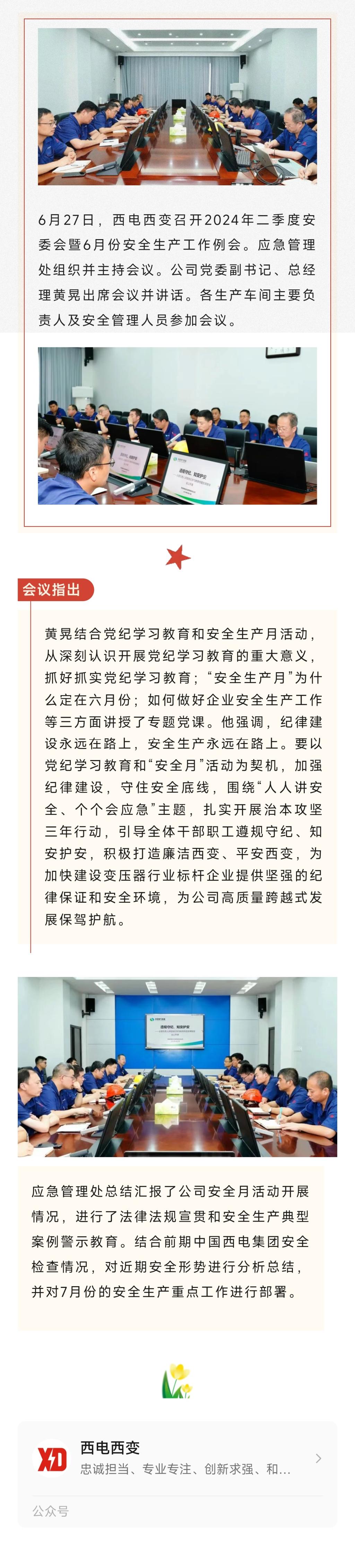 遵規守紀 知安護安丨西電西變召開二季度安委會暨六月份安全工作例會