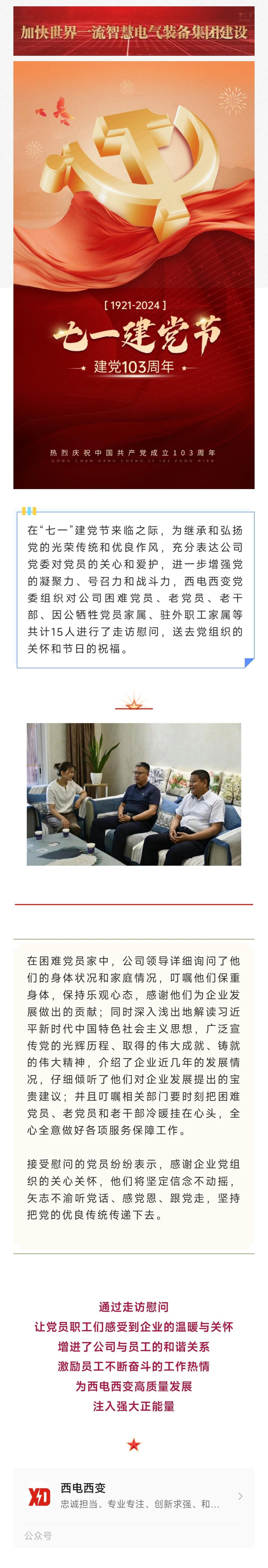 慰問送關(guān)懷 溫暖頌黨恩丨西電西變黨委開展“七一”走訪慰問活動(dòng)