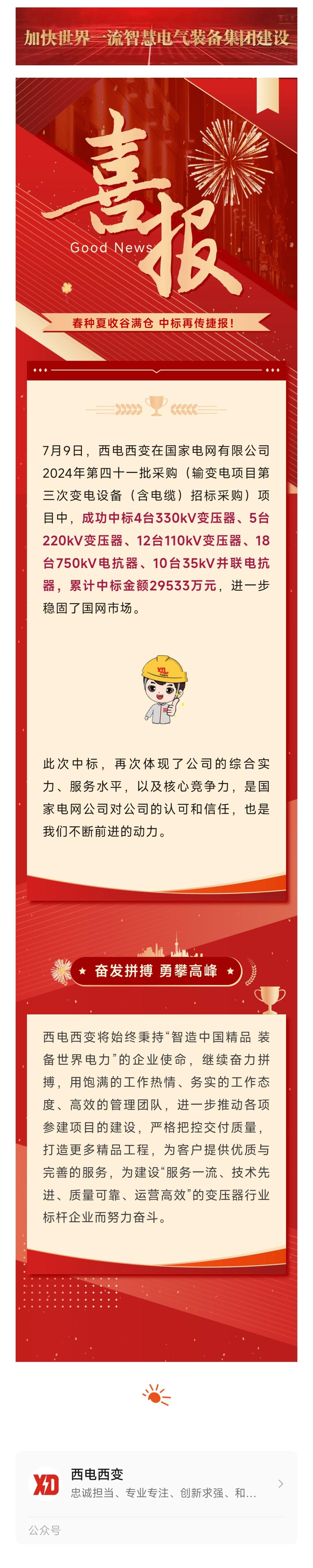 喜報丨聚力當“夏” 火熱“標”升——西電西變成功中標2024年國網(wǎng)三批項目