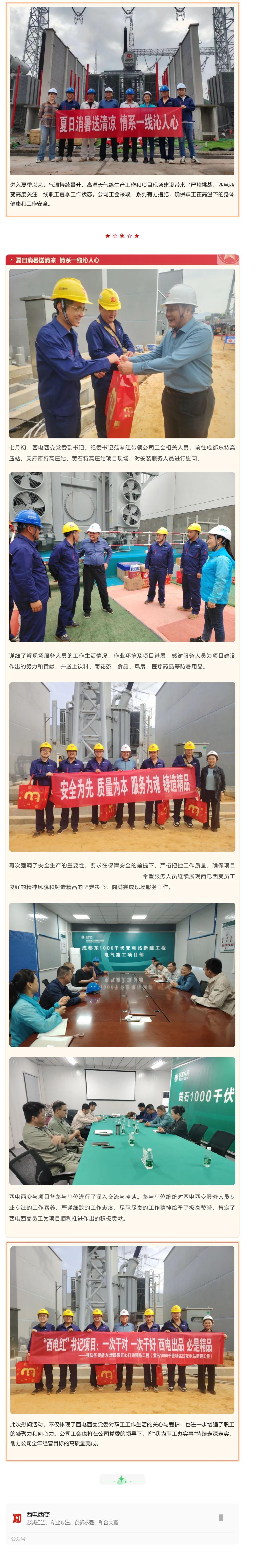 夏日消暑送清涼 情系一線沁人心丨西電西變到成都東、天府南、黃石等特高壓站項目現場慰問安裝服務人員