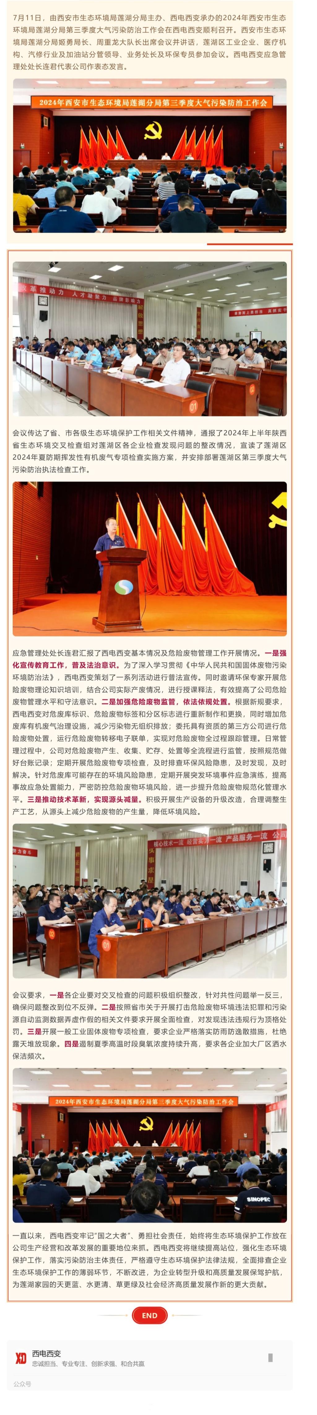 牢記“國之大者”、勇擔社會責任丨西電西變承辦2024年西安市生態環境局蓮湖分局第三季度大氣污染防治工作會
