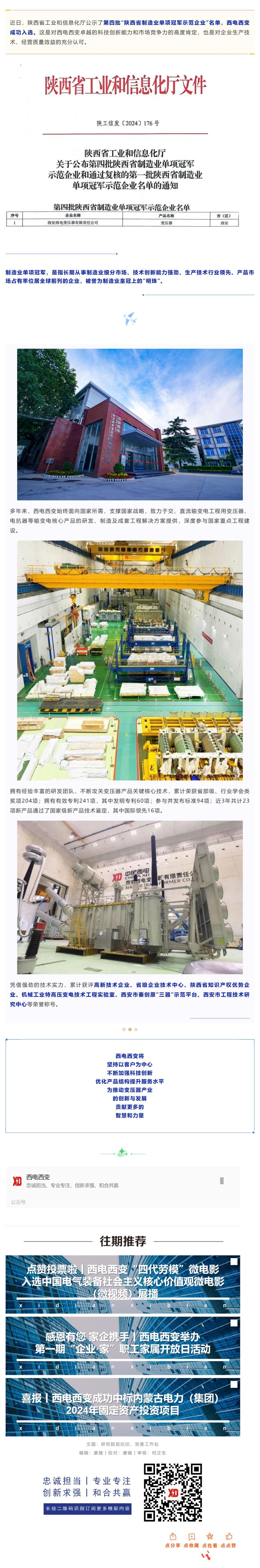 喜報丨西電西變獲評“陜西省制造業(yè)單項(xiàng)冠軍示范企業(yè)”榮譽(yù)稱號
