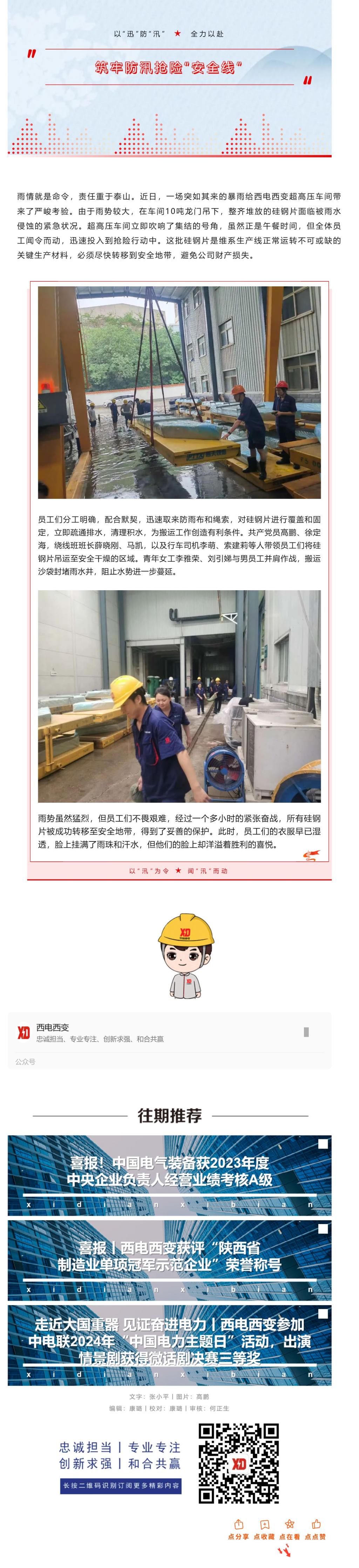 以“迅”防“汛”丨西電西變超高壓車間員工冒雨力保生產材料安全