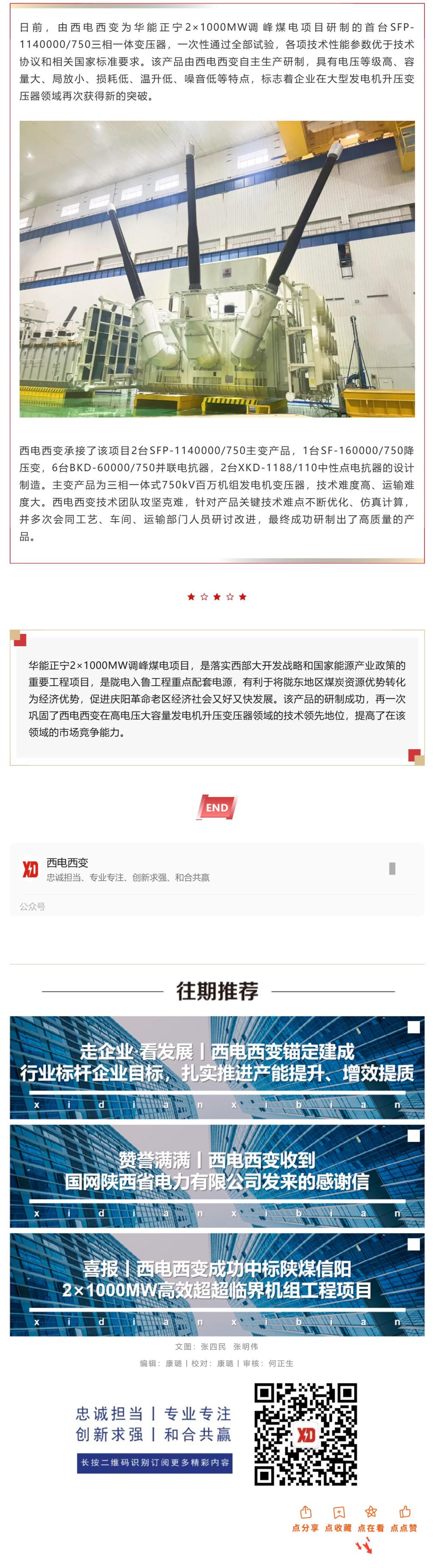 喜報(bào)丨西電西變研制的首臺SFP-1140000_750華能正寧三相一體變壓器一次性通過全部試驗(yàn)