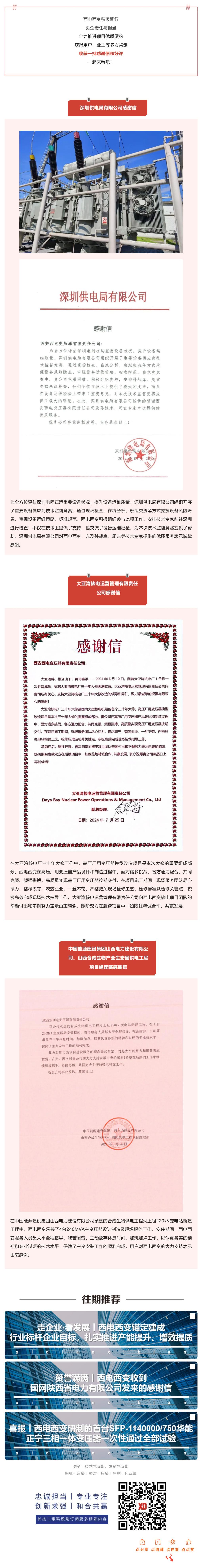 優(yōu)質(zhì)服務(wù) 客戶肯定丨西電西變收獲一批感謝信與好評