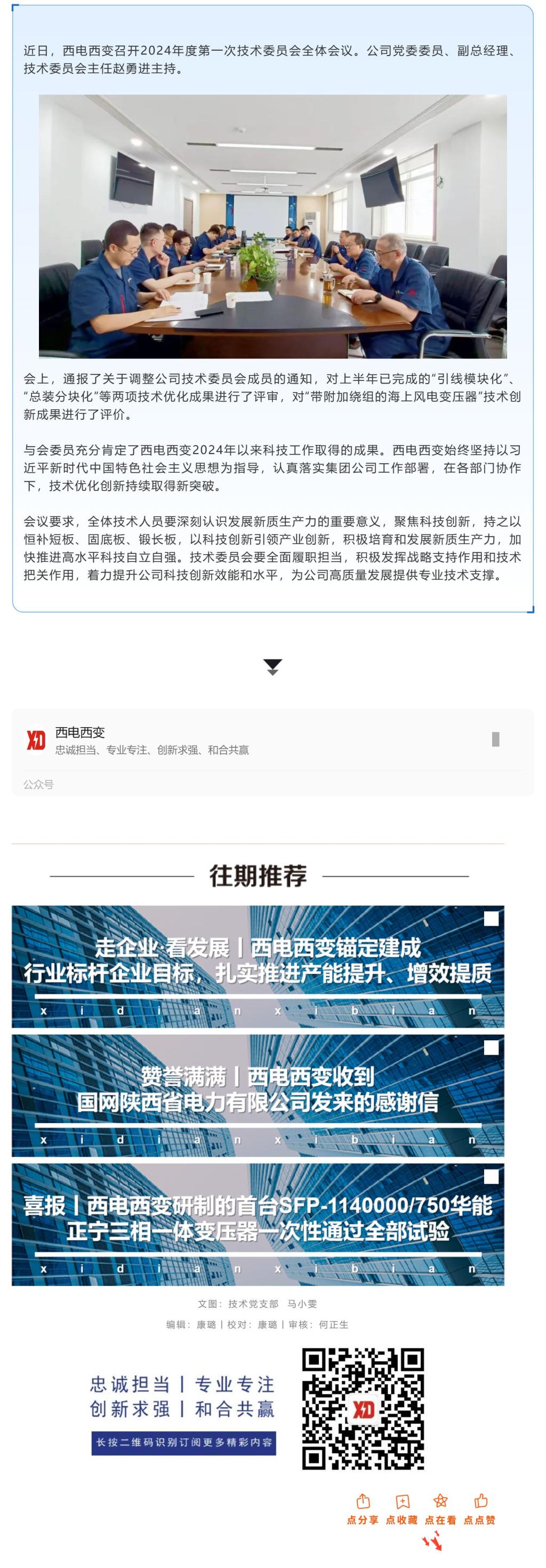 積極培育和發展新質生產力丨西電西變召開2024年度第一次技術委員會全體會議