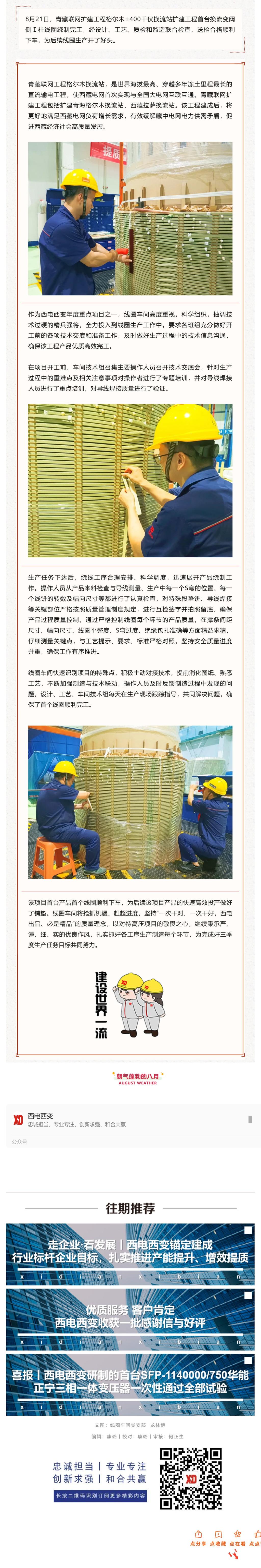 重點項目進度丨西電西變首臺格爾木項目閥側Ⅰ柱線圈繞制完工