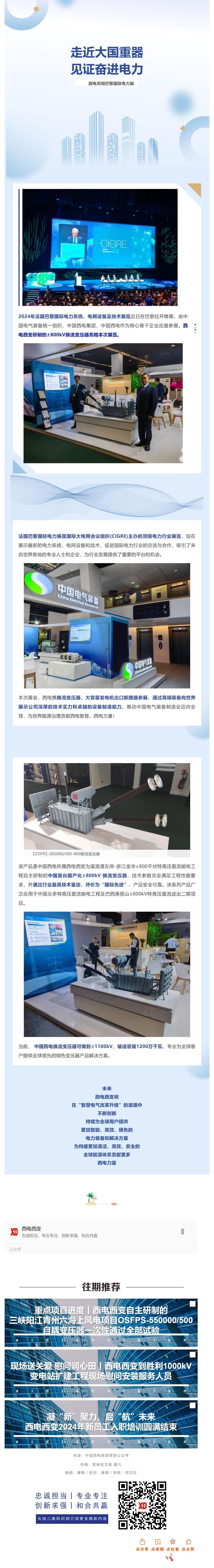 走近大國重器_見證奮進電力丨西電西變研制的±800kV換流變壓器亮相巴黎國際電力展