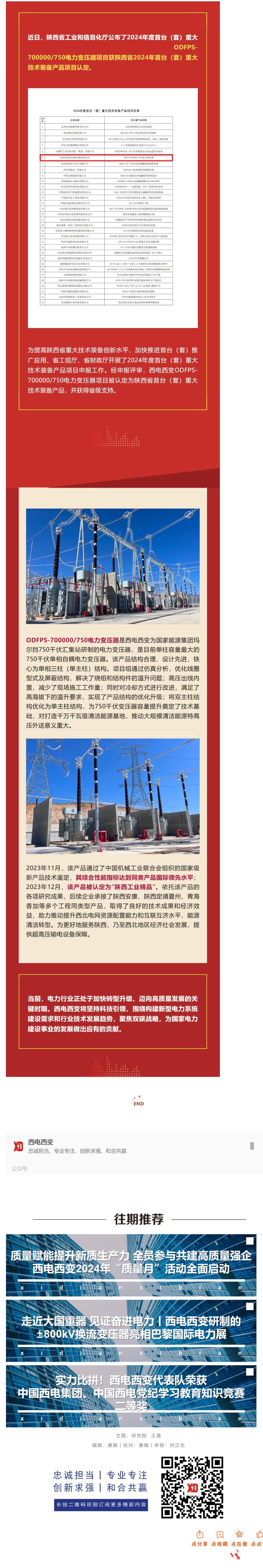 喜報(bào)丨西電西變1項(xiàng)研發(fā)項(xiàng)目榮獲陜西省2024年度首臺(套)重大技術(shù)裝備產(chǎn)品項(xiàng)目認(rèn)定