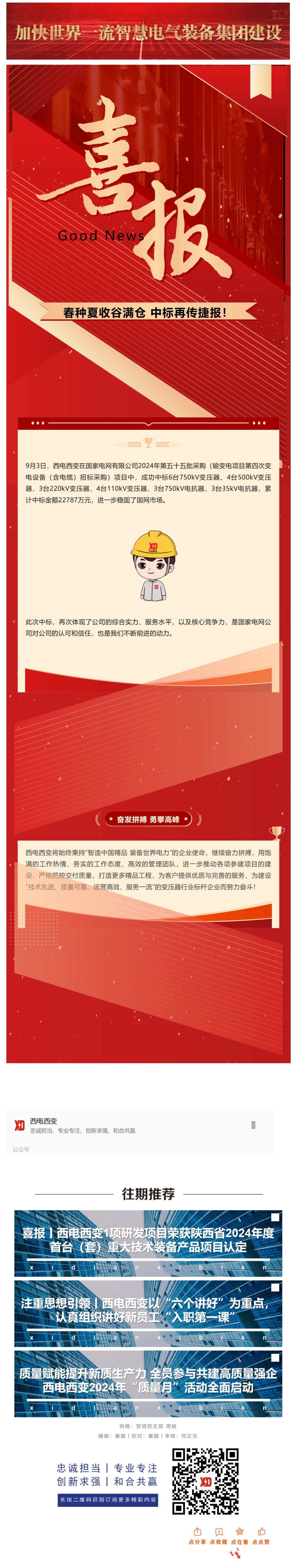 喜報丨秋風起_添秋“標”——西電西變成功中標2024年國網四批項目