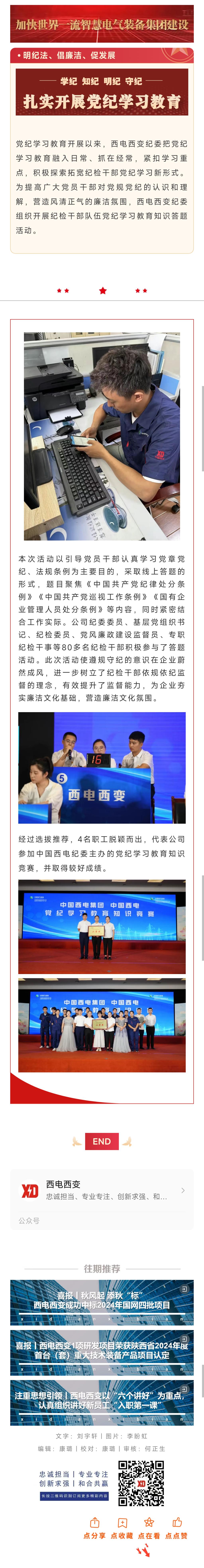 明紀法 倡廉潔 促發展丨西電西變紀委開展黨紀學習教育知識競賽