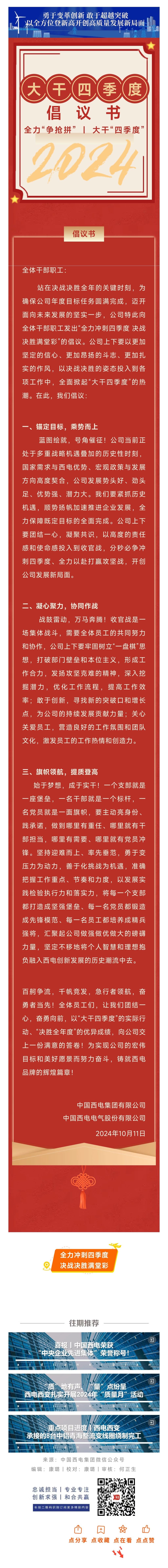 倡議書丨全力沖刺四季度 決戰(zhàn)決勝滿堂彩