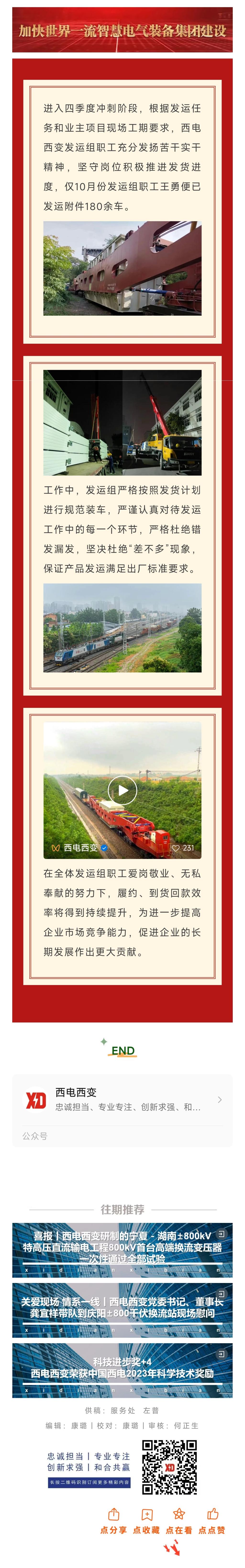 大干四季度丨西電西變發運組保質保量完成10月份發運工作