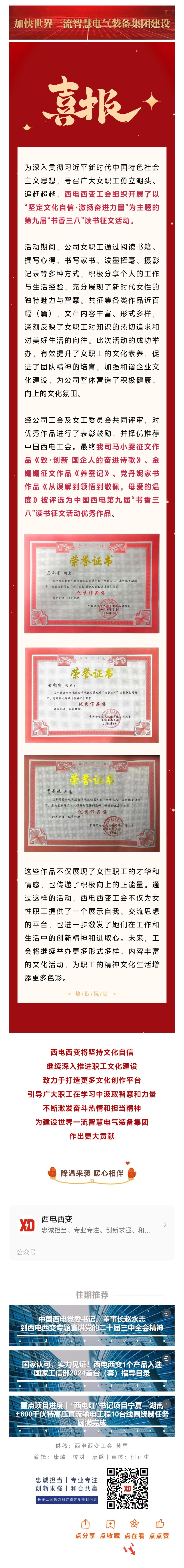 巾幗風采 玫瑰書香丨西電西變3個作品榮獲中國西電第九屆“書香三八”讀書征文活動表彰