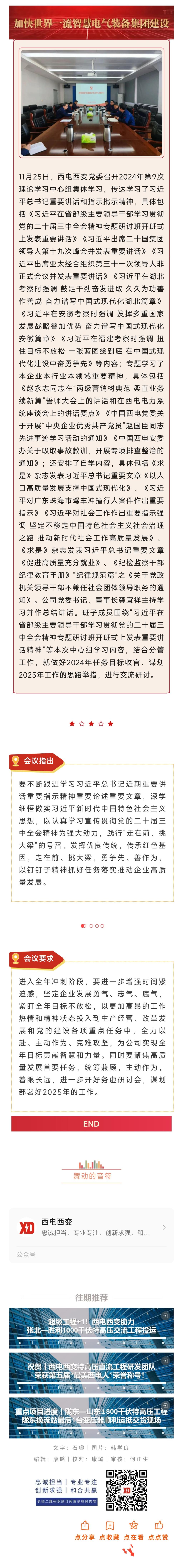 沖刺四季度 勇創新佳績丨西電西變黨委開展2024年第九次理論學習中心組集體學習