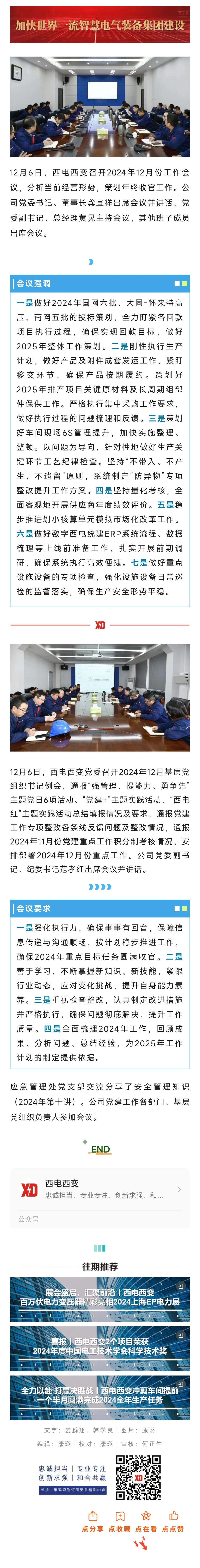 沖刺全年紅 打好收官戰(zhàn)丨西電西變召開2024年12月份工作會議、基層黨組織書記例會
