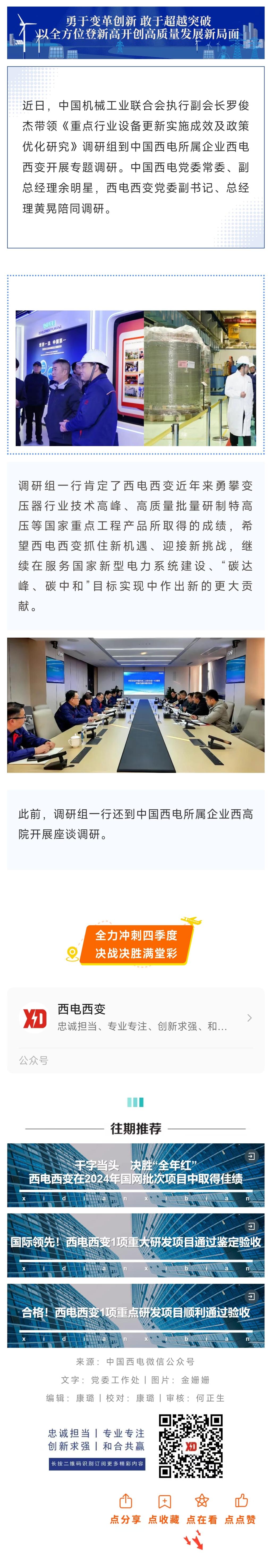 中國(guó)機(jī)械工業(yè)聯(lián)合會(huì)執(zhí)行副會(huì)長(zhǎng)羅俊杰到西電西變開(kāi)展專題調(diào)研